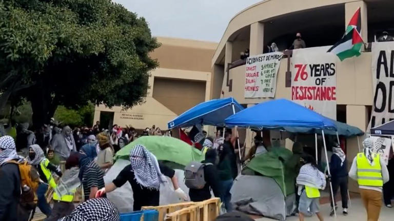Peacefully? I visited the UCI encampment just days before the police finally were called in. What I witnessed was a quad area surrounded by classroom and research buildings taken over by pro-Hamas students and other outside agitators. Activists were leading chants on bullhorns, nonstop, and some guy was beating on a drum. They were disrupting the operation of the university and interfering with the ability of teachers and students in the classrooms to go about the business of teaching and learning.